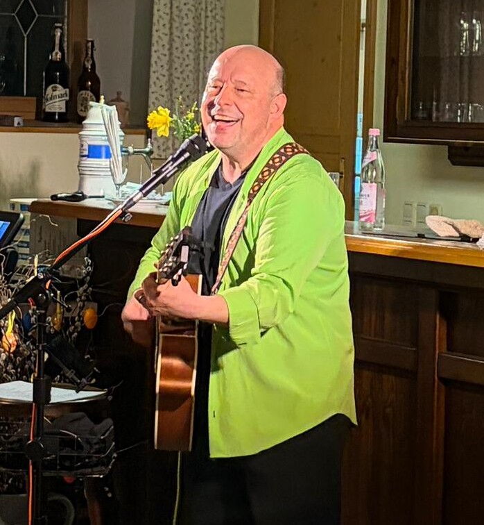 Unterstützt wurde er dabei von seinem Sohn Moritz, der an verschiedenen Percussion-Instrumenten mitwirkte, auch die Premiere der neuesten Liedkomposition „I mecht gern a schene Wölt“. In seinen Liedern besingt Kamm all das, was eine „schöne Welt“ ausmacht: besondere Momente, die Liebe zur Musik („Mei Stimm und mei Gitarr“), das gemeinsame Genießen („heats einfach zua, genießt’s so guat wias grod geht“) sowie die Geselligkeit („I mecht ratschn, i mecht singa, i mecht a Halbe mit Eich tringa“). Auch die Vorfreude auf den Frühling ließ er mit seinem Lied „Mei Garten – ein buntes Meer aus Blüten“ lebendig werden.